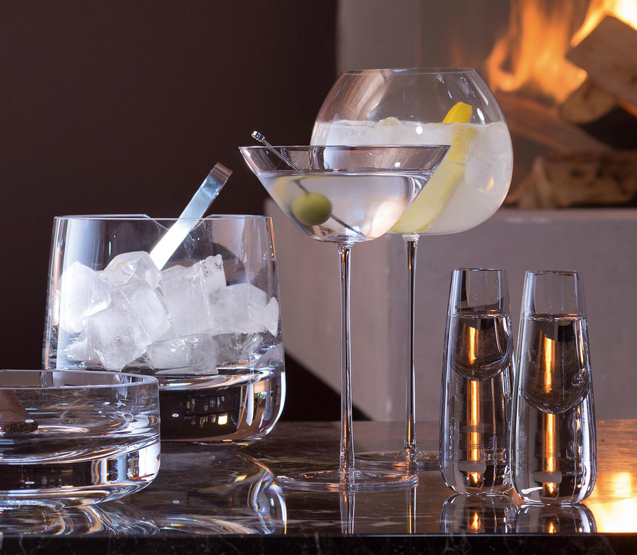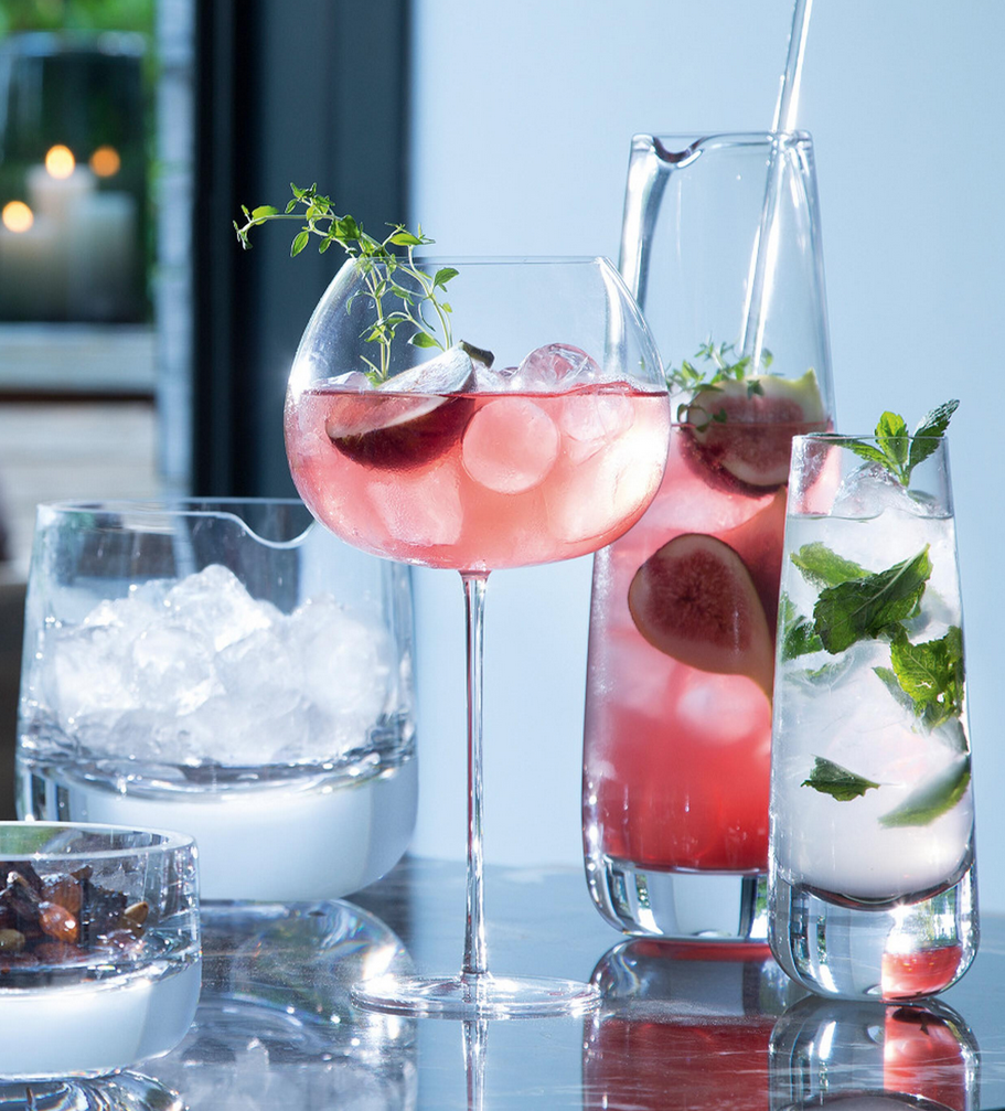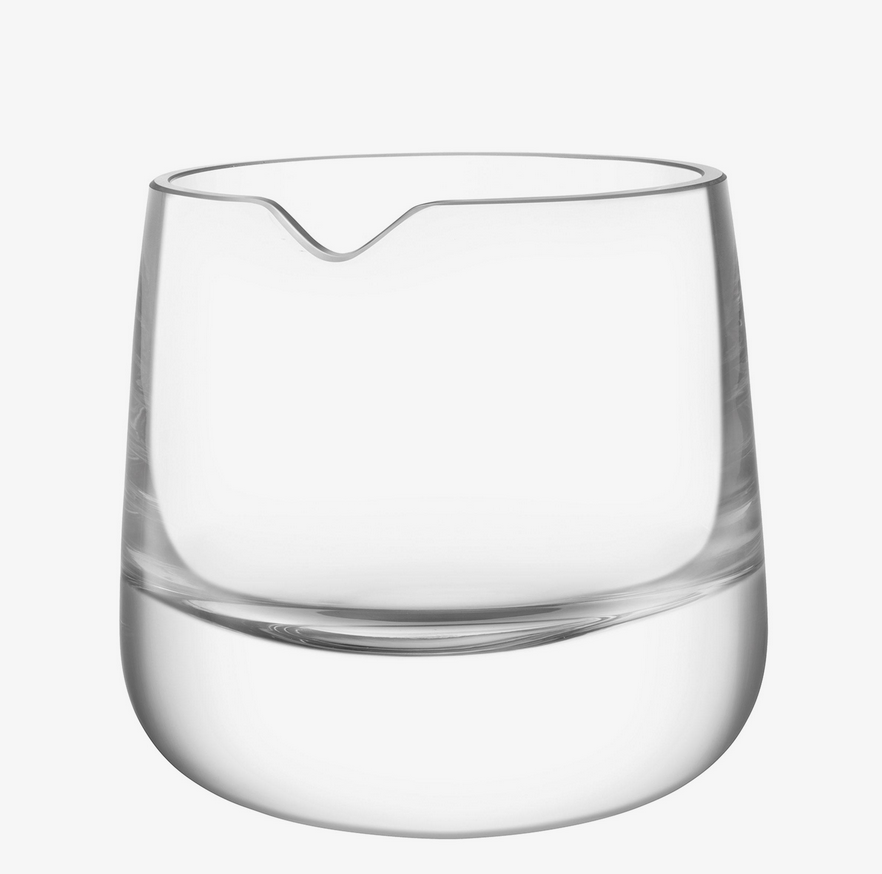 A modern, mouth-blown glass bucket with a refined shape for refreshing drinks. Expert craftsmanship is required to make and finish each piece by hand. The thick, cut and polished rim has an undulating groove to hold a spoon or ice tongs in place.