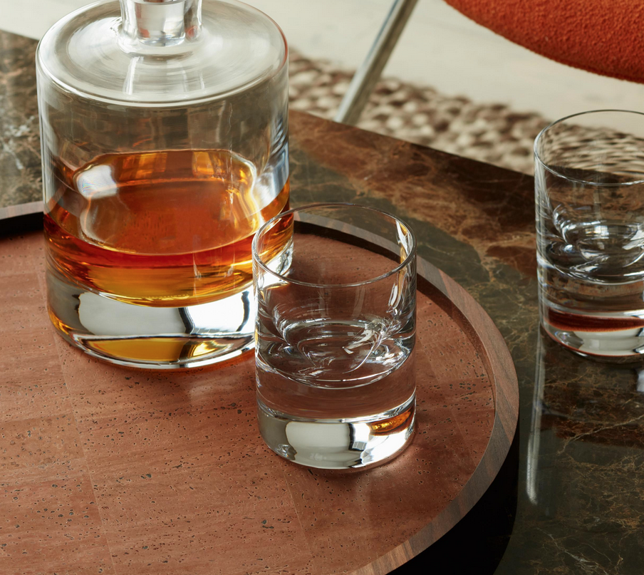 Fine walls and weighty bases accentuate the clean lines of these modern tumblers. Expert craftsmanship is required to make and finish each piece by hand.