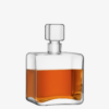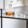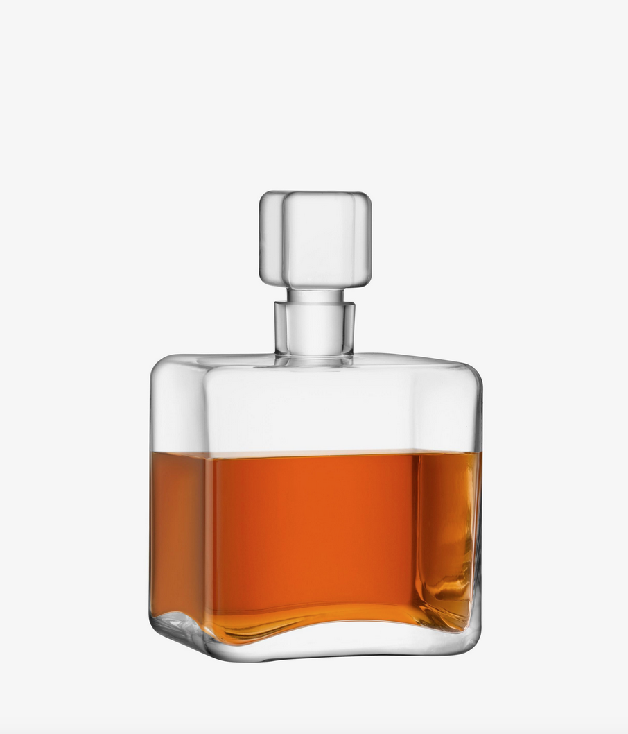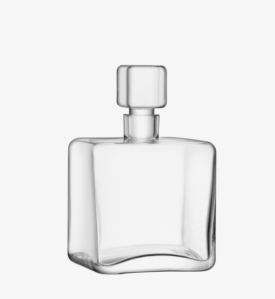 The decanter is mouth blown by skilled artisans to create a contemporary, straight-sided shape, square in cross section. The heavy glass stopper has a corresponding cube shape and is hand ground for a perfect fit.