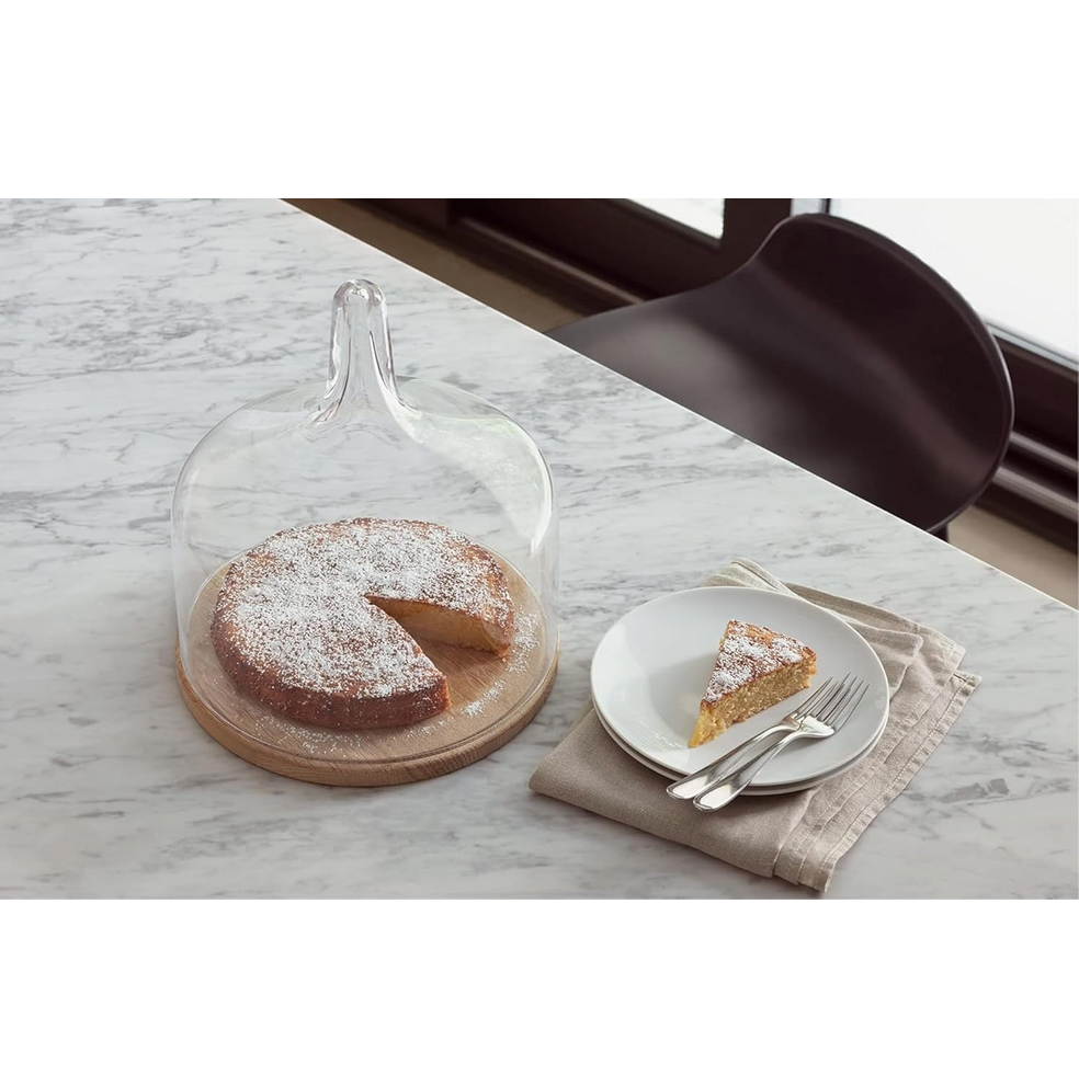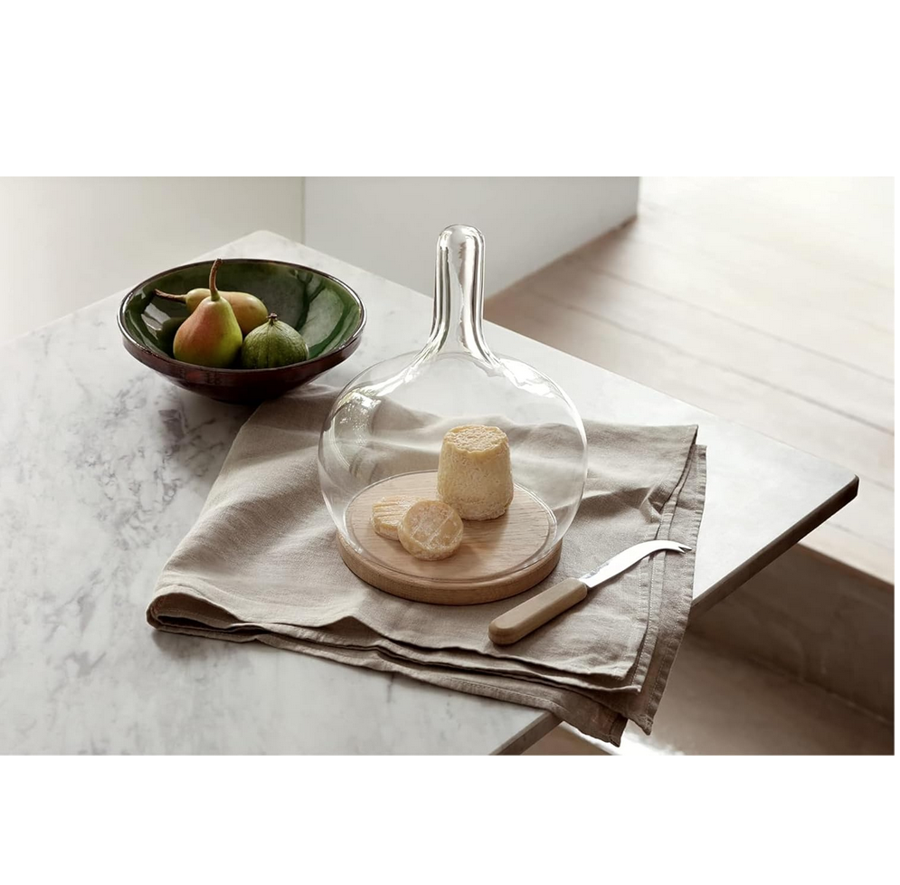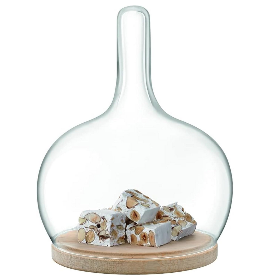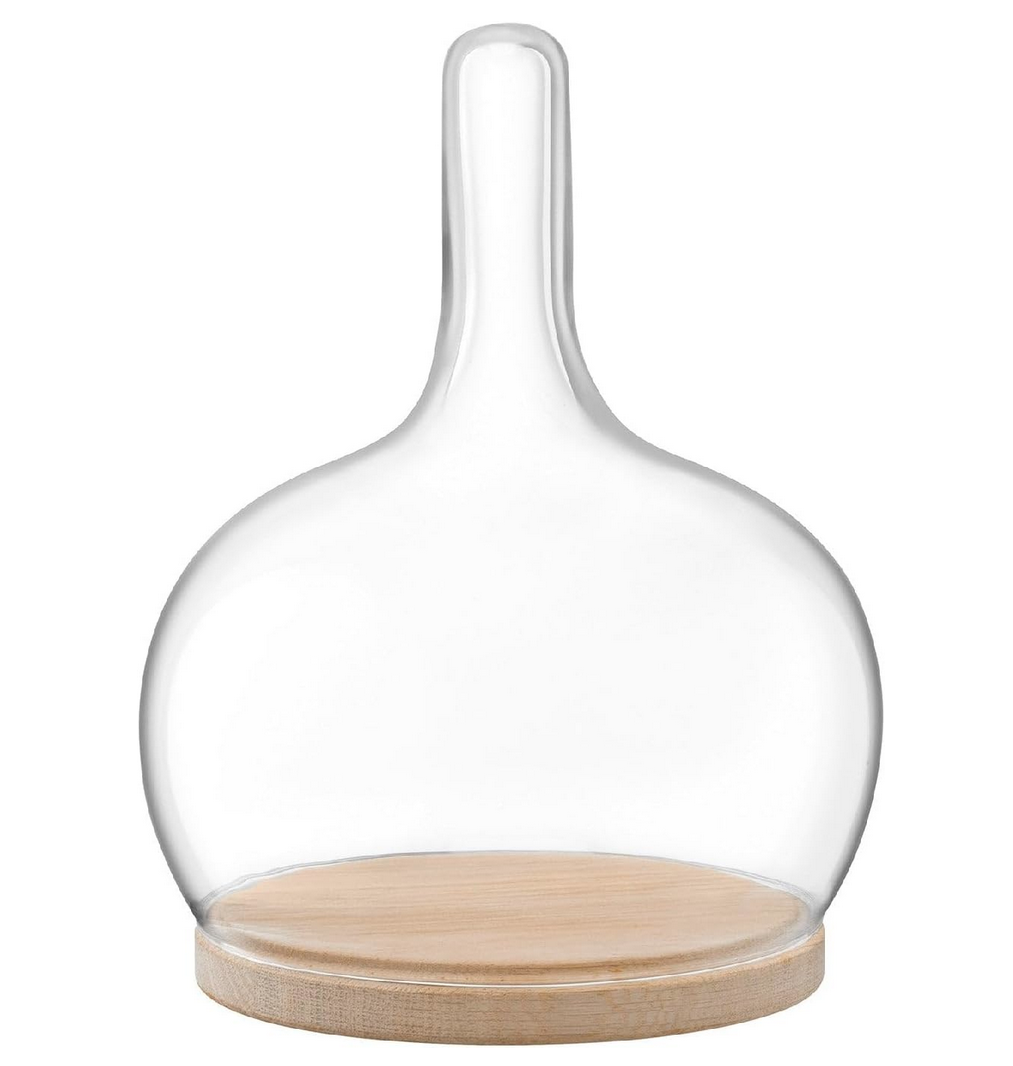 A mouth-blown glass dome situated on an FSC-certified oak base. LSA International’s dome with oak base is 19.5cm in diameter. The mouth-blown glass dome features a tall hollow handle created by skilled glassblowers. LSA International’s glass dome with oak base is a contemporary way of serving cheeses, cakes or pastries.