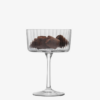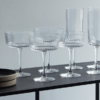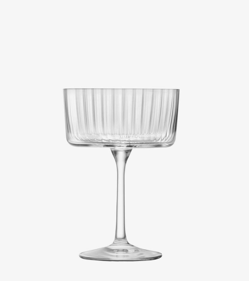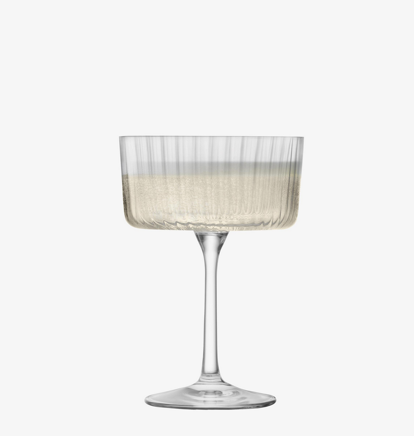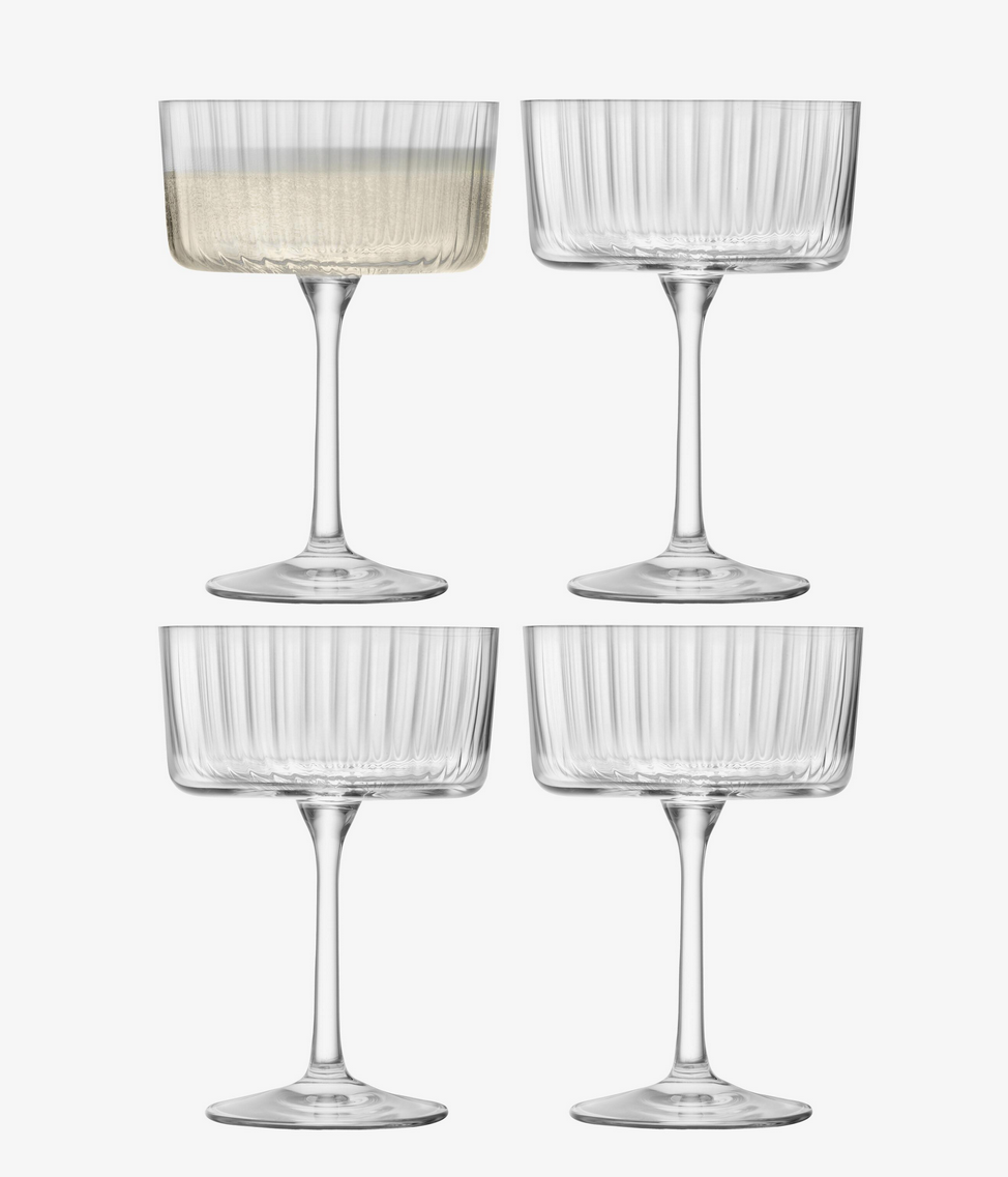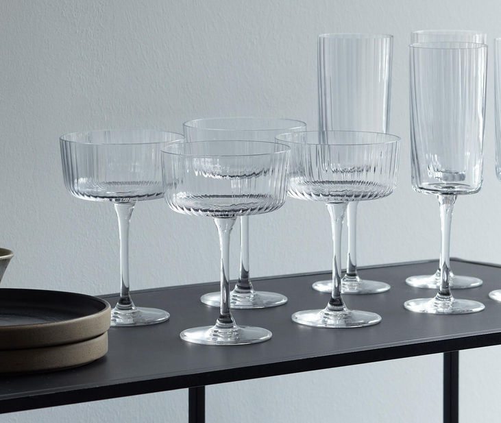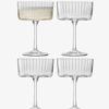 A set of four champagne/cocktail saucers with fine textured walls, a modern shape and casual stems. For serving champagne, prosecco and cocktails.