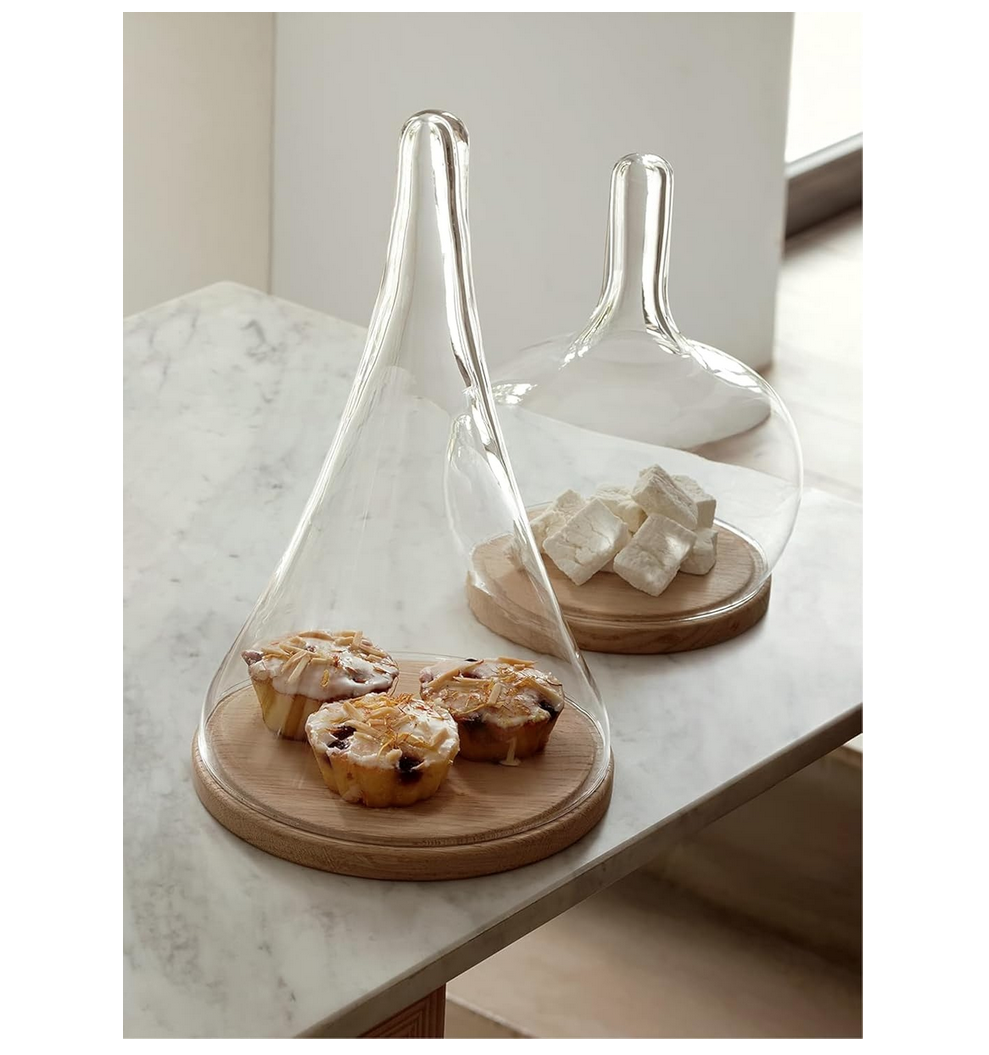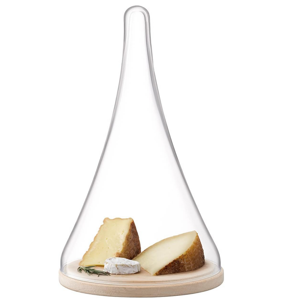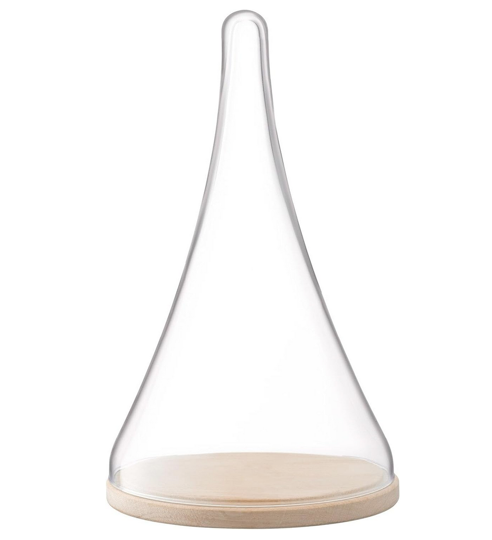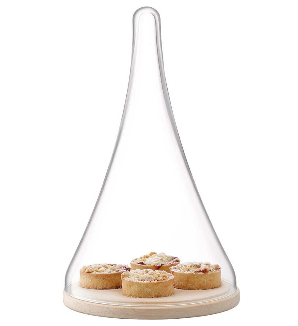 A tall handmade glass dome sat on an FSC-certified oak base. LSA International’s conical Cloche glass dome features a hollow handle made by skilled glassblowers. The Signature Cloche tall glass dome and oak base is 21cm in diameter. Inspired by the iconic profile of a tagine dish, the tall LSA International dome is perfect for serving cakes, cheeses or pastries.
