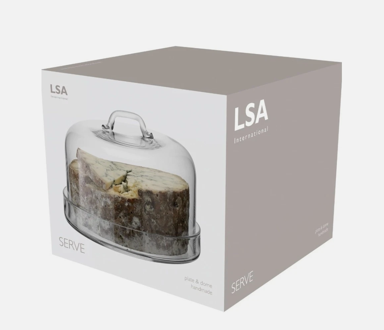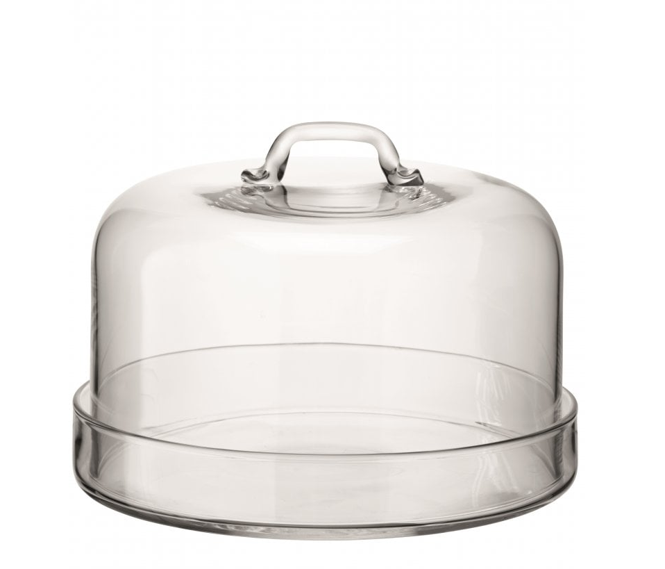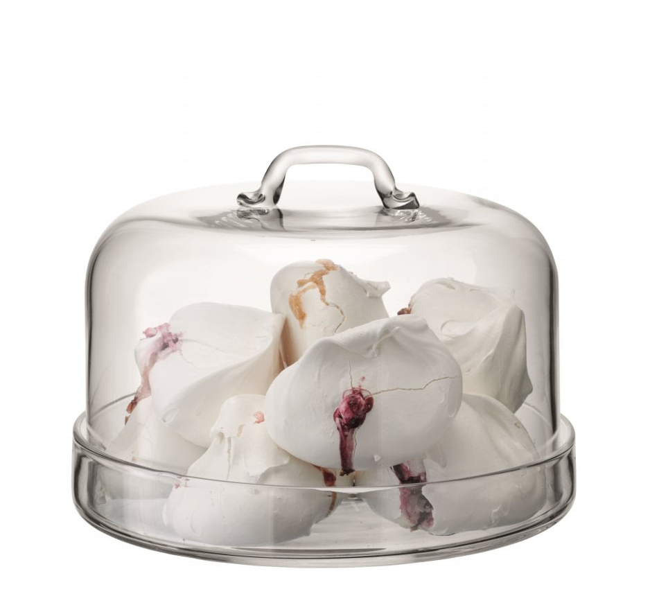 This beautifully proportioned handmade rimmed glass plate with a flat glass dome with handle from LSA’s versatile Serve collection is both stylish and practical.