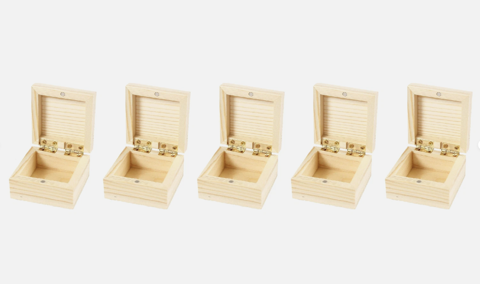 Wooden pinewood ring boxes with a magnetic close and brass hindges set of 5 boxes